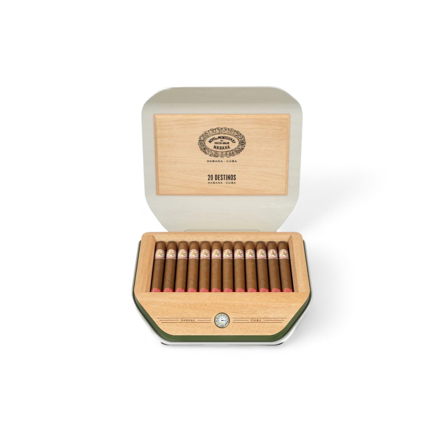 Le Destinos Travel Humidor de Hoyo de Monterrey est un coffret en édition limitée réunissant des cigares cubains premium dans un humidor portable, conçu pour les amateurs exigeants souhaitant allier élégance, praticité et excellence lors de leurs déplacements.